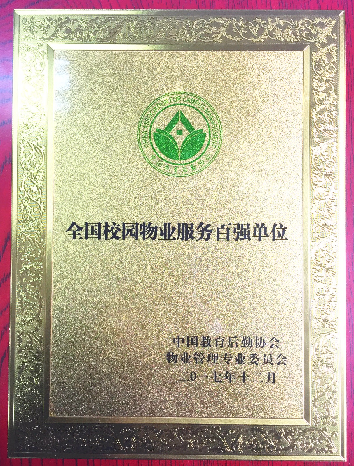 發(fā)展至今,先后榮獲全國校園物業(yè)服務百強單位、中國高校物業(yè)管理工作先進集體、省級物業(yè)服務綜合實力50強、省級示范物業(yè)管理項目、江蘇省放心消費創(chuàng)建先進及示范單位、鎮(zhèn)江市重合同守信用企業(yè)、市級示范物業(yè)管理項目、鎮(zhèn)江市人力資源骨干企業(yè)、鎮(zhèn)江市勞動關系和諧示范企業(yè)等榮譽稱號。